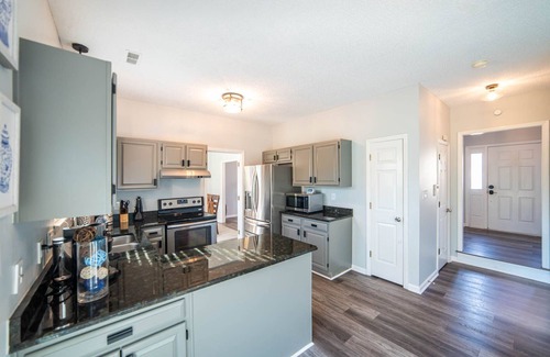 Our Mansion™ Charlotte Family Home was completely renovated in 2019 to reflect a modern, luxury lifestyle near the up and coming Steele Creek neighborhood. This 4-bedroom home is professionally furnished by West Elm™ & CB2™. With an updated kitchen, bathrooms, and floors this home is the perfect place to host your family and friends. The living room is equipped with 55" Roku TV & fireplace. Only Minutes from Carowinds and all other things south Charlotte has to offer!
