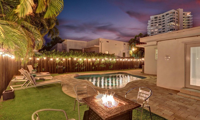 Experience the ultimate beachside oasis centrally located in the heart of Ft. Lauderdale, where up to 10 people can stay! A 5-minute walk to Ft. Lauderdale Beach and Oceanfront Park where you can relax in the sun. Enjoy the private pool, which can be heated, or gather around the outdoor fire pit with ample seating. Get the authentic Florida vacation experience with everything at your fingertips - bars, restaurants, and shopping!
