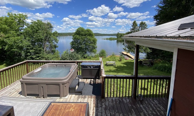 Beautiful 4 seasons waterfront cottage with an outdoor hot tub/spa- a dream destination to spend some quality time with the family!