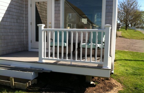 Enjoy this two bedroom home (one with a queen bed one with two twin beds, and a queen sleeper sofa), a fully equipped kitchen, bath with tub/shower, washer/dryer, dining room, living room with 50 inch TV, cable, inter-net, and a view that will take your breath away. A brand new deck was built to enjoy the sunrise, or sunset. A gas grill is provided along with outside dining area. We are also walking distance to the public beach, with ocean side dining and cocktails. Plimouth Plantation is just a short walk.