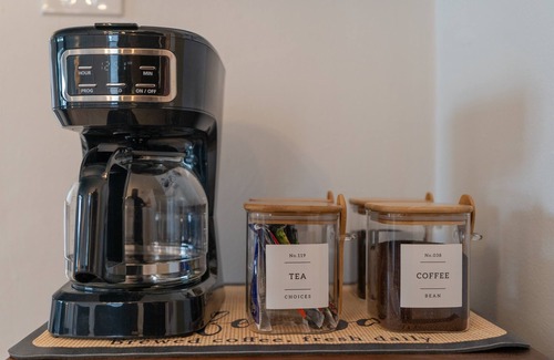 The kitchen is fully equipped with all the essentials, including a fridge and freezer, Ninja blender, Insta-Pot, oven, 4-burner stove, and a dishwasher to make cleanup easy. You’ll also find a coffee maker, toaster, cooking utensils, dishes, and silverware for up to four guests.