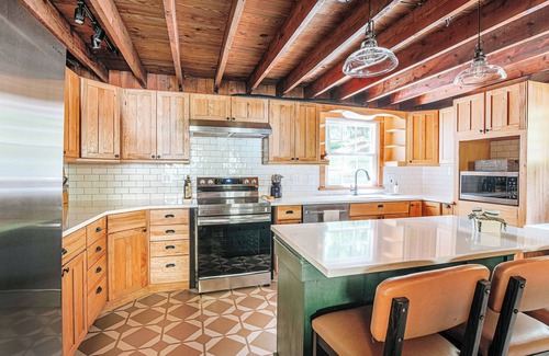 Outside, enjoy the fenced-in yard with your crew - playing lawn games, soccer, or football (we suggest two-hand touch ;D ), explore 16 acres of mountainside farmland, or take a long walk on private trails around the property. We invite you to bring your well-behaved dogs to enjoy the fully fenced property (bowls, paw wipes, and poop bags provided). Wander up the hill to a gorgeous view and drift along the lighted path to the "upper" fire pit. Stick close to the house to relax in Adirondack chairs next to the grill area and lower firepit, roasting marshmallows and enjoying a campfire before falling into cozy beds.