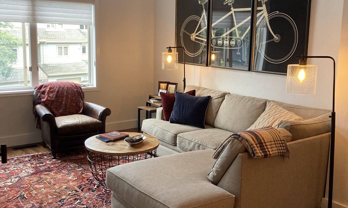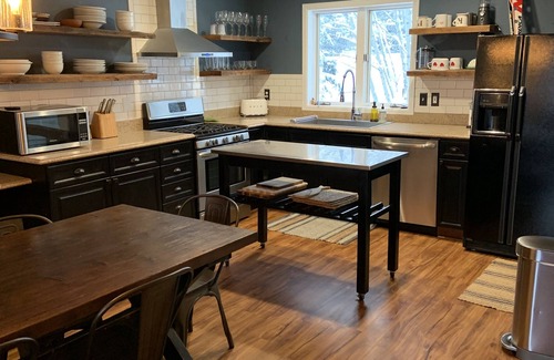 You’ll feel right at home here, we hope. The main level boasts an open floor plan with high ceilings, durable floors, fireplace, spacious kitchen, large dining table, a powder room, and an outdoor patio with gas grill and seating. During the winter there's a boot dryer for your ski or snowboard boots.