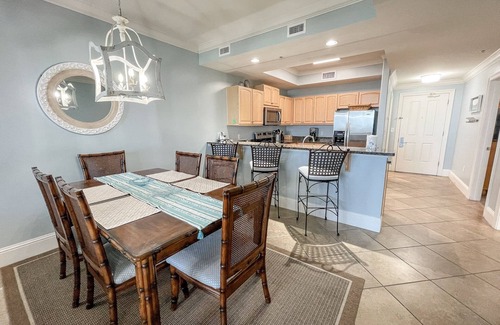 Unit 220 - Holiday Isle. Enjoy the best of what Dauphin Island has to offer in this direct gulfview luxury condo! Elevated complex means you still get sweeping views of the sandy beach, gulf waters, and Alabama's best sunsets. 220 is a 2 bedroom / 2bath unit that sleeps 6. Interior furnishings include: M-King, 2nd-queen and two twins. Fully stocked kitchen features 3-seater breakfast bar adjacent to the 6 top dining table. Enjoy beautiful tile throughout the open common area. Living room and Master Bedroom each feature private balcony with outdoor dining amenities included.