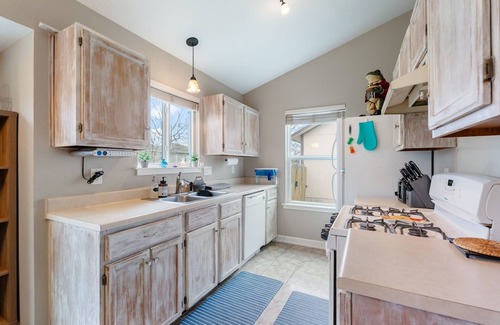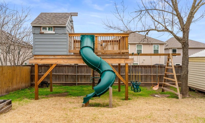In this peaceful 2-bedroom home south of the city, the quiet, relaxing vacation you’ve been dreaming about is yours to enjoy while placing you within just a few minutes of all the excitement this energetic city offers. As you venture into the city, stop to check out the iconic South Congress neighborhood offering a vibrant stretch of boutiques, music and art venues, food trucks, and restaurants dishing up incredible local fare. Past that, trendy South Lamar is one of Austin’s busiest neighborhoods, offering its own variety of cafés, art galleries, live music, and entertainment. Of course, you’ll want to keep going into downtown where the pulsating music scene and eclectic art installations give life to every street. When retiring back at the home after long days of exploring, there’s no place better than the back yard offering comfortable outdoor seating on the patio and a play structure with slide and swings certain to be a hit with the little ones. Whip up a favorite cocktail or pour a glass of wine and unwind in the fresh air while the sun sets on another perfect vacation day.