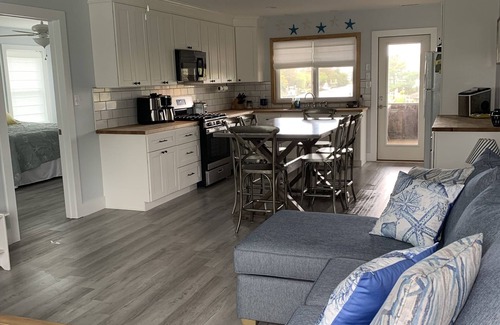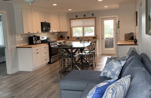Canal front property in private and quiet neighborhood. Great for families and children. Large lawn area for children to play. Dock for a boat (boat ramp is less than 5 minutes away, 4ft. draft) with fishing cleaning station, also great for fishing and crabbing. One two person kayak, two adult single kayaks, 2 child size kayaks, and one paddle board! Close to ocean and sound.