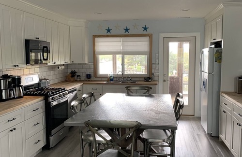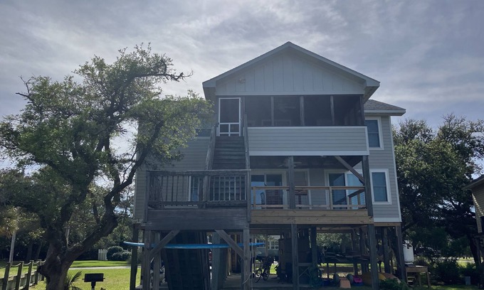 This is a great 4 bedroom home with 3 full bathrooms. Sleeps up to 10-12 people comfortably (one king, two queens, 3 bunk beds). Has a wonderful screened in porch facing the water! Open living room and kitchen. Great for families (renter must be 24 years of age or older)! Kitchen amenities include, stove/oven, dishwasher, microwave, refrigerator, toaster, coffee machine, crock pot, blender, hand mixer, grill utensils, pots/pans, baking dishes, cooking utensils, serving platters, plates, bowls, cups, and plenty of silverware. Includes a washer and dryer. Also, has a charcoal grill facing the water.