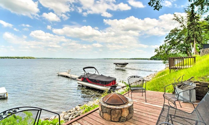 This vacation home provides air-conditioned accommodations with a balcony. With free Wifi, this 4-bedroom vacation home features a cable flat-screen TV, a washing machine, and a fully equipped kitchen with an oven and microwave. Towels and bed linen are available in the vacation home. The accommodation has a fireplace. The nearest airport is Hector International Airport, 47 miles from Family-Friendly Home on Pelican Lake with Fire Pit.
