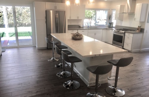 This stunning, completely remodeled single level/ranch style 3-bedroom, 2-bath home has a private pool (completely 4 feet deep), large 6 person hot tub/spa, all turf yard, 3-hole putting green, and badminton/volleyball area. Plenty of toys and games for the kids of all ages!
