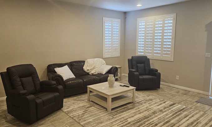 Family friendly home Perfect for snowbirds Only 20 min to strip Pool/hot tub is located in North Las Vegas. Family friendly home Perfect for snowbirds Only 20 min to strip Pool/hot tub provides accommodation, featuring Kitchen, Air Conditioner, Pool, among other amenities. This House features Kitchen, Air Conditioner, Pool, to make your stay a comfortable one.