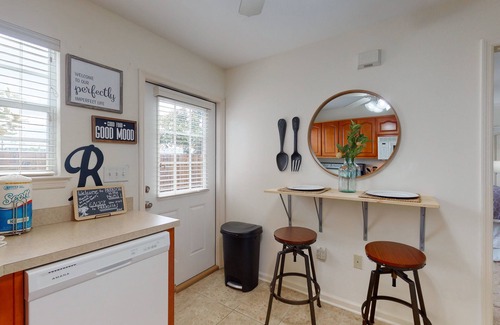 Enjoy a visit to the lovely Mexico Beach at this charming, two-story retreat! Comfort comes easy in central air conditioning, enhanced by a furnished patio where you can get some fresh air. Beachy decor and bright details will help put a smile on your face when coming in after a day at the beach. Enjoy cooking together in the fully-equipped kitchen, featuring a fridge with a water dispenser and a dishwasher for easy cleanup. Each bedroom features a ceiling fan and flatscreen TV so everyone can wind down their own way. In addition to everything at this condo, guests can enjoy access to a shared pool just 25 feet from the townhouse's front door.