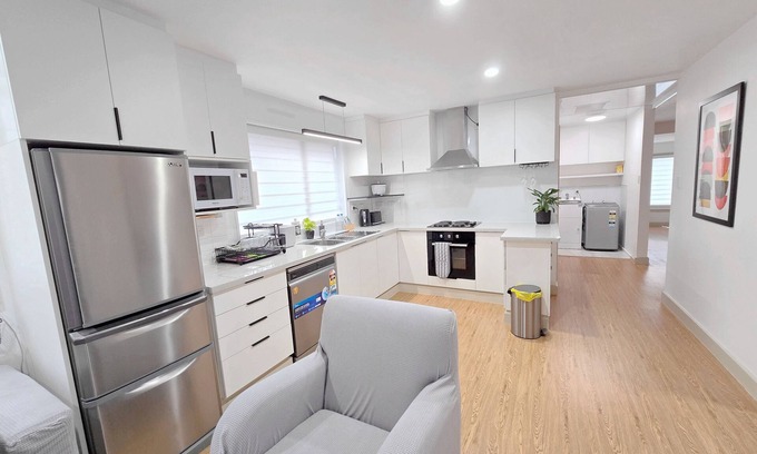 Our holiday house consists of diverse rooms and their content, all prepared for your best stay. All furniture and surfaces are new and clean, along with amenities such as towels and certain toiletries. The living room offers a perfect relaxing space because of access to Netflix and YouTube, and the kitchen beside it calls for a bonding night with the family. The kitchen has a variety of cutlery, new cooking ware, a stove, microwave, dishwasher and a sizeable fridge. You will find a cozy dining room beside the kitchen as well. The three bedrooms come with sizes which suit everybody's needs. One has two single beds, nightstands and a wardrobe; the second has a queen-sized bed, nightstands, luggage rack and wardrobe; and the last has a king-sized bed, nightstands, wardrobe and an ensuite with a toilet and shower. Finally, there is a bathroom with a shower and two sinks, and beside it, a clean toilet. These two rooms are placed for easy access from all bedrooms. Little details in our holiday house include several lights which change tint depending on personal preference, artworks hung on walls and a few spots of green from indoor foliage. Outside, there is a tidy garden and a lawn enclosed by a fence. There are four available parking spots on the site, not including ones outside the property. Located inside a district full of restaurants, stores and local shops, our holiday house is convenient for families and individuals alike. Across the road is a fruits and veggies store, and around the corner, Church Corner Mall and Woolworths are the perfect place to get groceries. A few minutes in the car will take you to weekend markets and restaurants with all kinds of cuisine. We do not compromise with the comfort and convenience of your stay. See you soon!