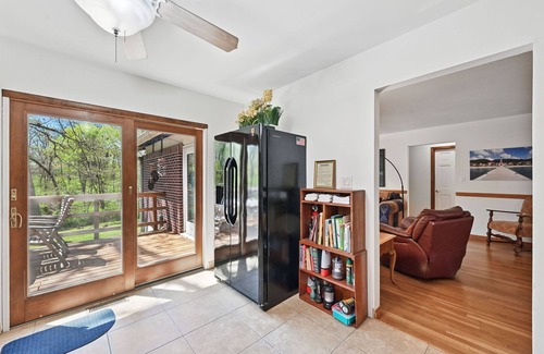 We have a billiard table, Ping Pong table and tons of board games for all ages, 50" big screen smart TV and full stereo system on the upper level and 42" smart tv on lower level. Two bedrooms have in room smart tv's. Handicap accessible for the upper and lower level. Hiking in the woods, enjoying the private back yard while grilling & picnicking at the house or next to the lake plus swimming, paddle board, Kayaks and fishing from the dock are the reasons we love spending time at home. The backyard is large and very private, great for making family memories. The neighborhood roads are private, quiet and extremely safe.