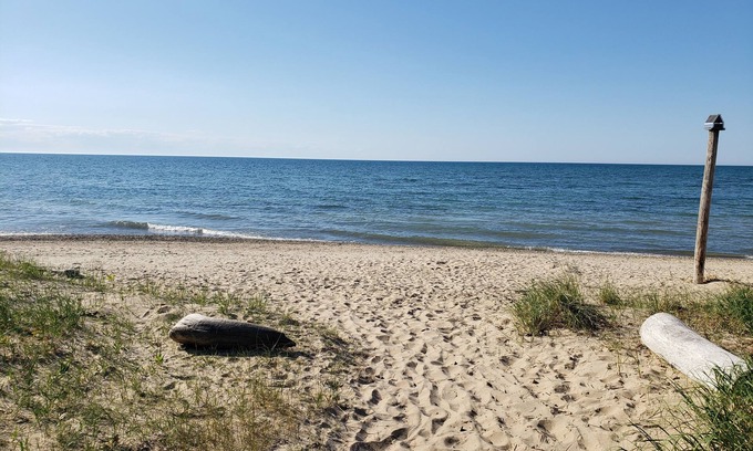 Our property offers an 1,100 sq ft chalet style lake house with 50 ft feet of private beach front on pristine Lake Huron. The house has all the comforts of home while still maintaining that "away from it all" feeling that you've been longing for. It features an updated full bathroom, a fully stocked kitchen, 3 bedrooms with all new queen size mattresses, new trundle beds for the kids, and air conditioning. The lot is almost 350 ft deep so there is plenty of room for the kids to run around and parking for up to 2-3 vehicles depending on their size. We have a swing set for kiddos for enjoy when not on th beach. We are located adjacent to M-25, on a private dead end road; no need to worry about traffic with small children. The house is located conveniently half way between Caseville and Port Austin. The house is also within walking distance from a convenience store and 1/2 mile from a Public Oak Beach Park and boat launch. This house is designed for 1-2 small families. No all adult parties.