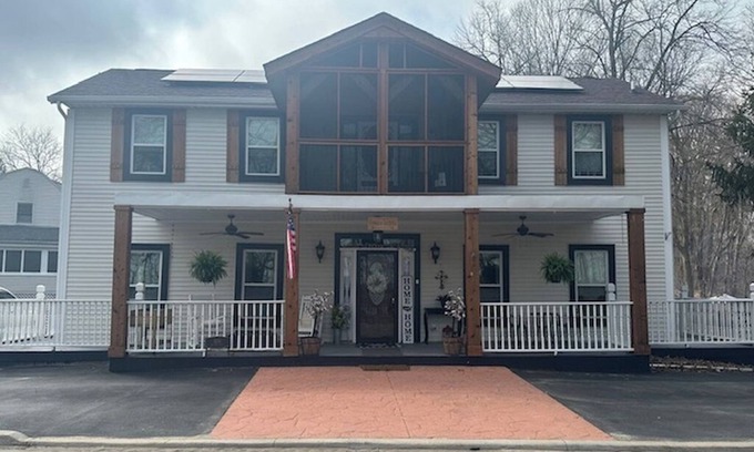 Unwind in La Porte at this lovely house. With 5 soothing queen bedrooms, this awesome property offers a peaceful retreat for guests. The house features AC, iron, WiFi, hair dryer, heating, and a dishwasher. The 3 bathrooms are equipped with a shower, bidet, and hair dryer. Forget all your troubles and enjoy some quiet time in the country, on the beach, in the hot tub, kayaking, biking, hiking. Four beautiful golf courses nearby. Use one of our 4 peaceful decks for your morning coffee or evening cocktails. Hang out by the fire pit or go to the two nearby casinos. Many restaurants and shops nearby as well as antiques. Enjoy your time in La Porte at our house.