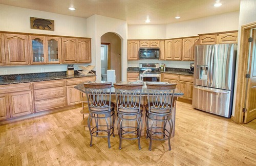Welcome to the Family friendly Lazy Bear Lodge, your ideal wedding accommodation in Pinetop, Arizona. This expansive 5-bedroom, 3500 square-foot retreat comfortably accommodates up to 20 guests, making it perfect for intimate weddings or large family gatherings. The serene atmosphere of the lodge, combined with its spacious and inviting layout, creates an enchanting setting for your special day while offering all the comforts of home.