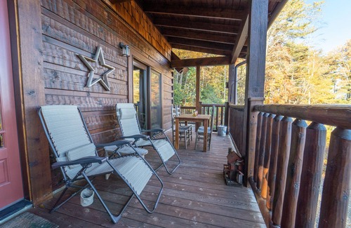 Guests are sure to enjoy a memorable vacation in this fully furnished, 3 bedroom/3 bath, luxury log cabin. The main level master bedroom has a king-sized bed & bath opening to outdoor hot tub while the upper master bedroom is furnished with a queen-sized bed, private sitting area, and bath. Yes, we have two private master suites! The lower level is a haven for kids with 2 twin bunks (4 beds) in the bedroom, a full bath, a ping pong table, and a TV/entertainment center. The spacious living room is furnished with couches and a gas log fireplace. The kitchen is perfect for dining as it is fully equipped with a stove, oven, full refrigerator, and microwave oven. Other amenities include central heat & A/C and washer and dryer. A covered deck and outdoor living area take advantage of the stunning long-range view while providing guests with a hot tub, charcoal grill, picnic table, and fire pit. The property also has provisions for equine boarding if guests want to bring horses for use on nearby trails. This cabin is just minutes away from many attractions and activities, including hiking, biking, rafting, zip-lining, and much more.