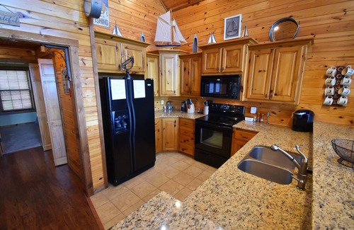 - 4 bedroom, 3 bath cabin which sleeps up to 14 people (no more than 11 adults)