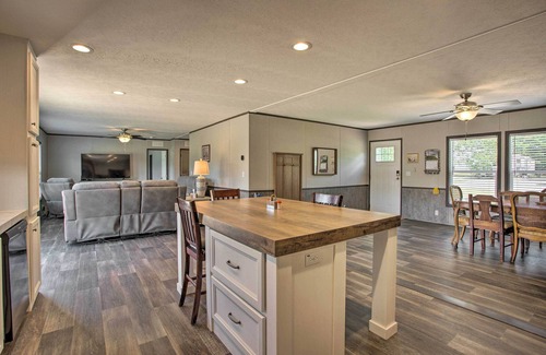 Find comfort in the countryside at this welcoming Madill abode! The 4-bedroom, 2-bathroom vacation rental boasts an open-concept living area and spacious rooms. You and your crew can feel at home with all the essentials you desire, like at-home laundry, a Smart TV, and a fully equipped kitchen. Traveling with an RV? There is ample parking on-site, including a covered parking shed for your convenience. Start your day with fresh-made coffee and end it by taking in the quiet scenery from the deck.