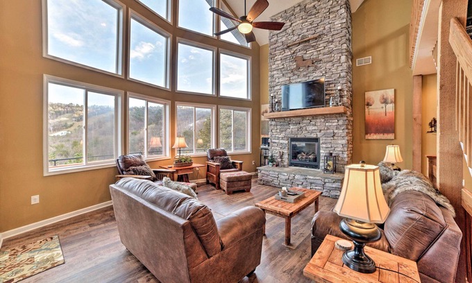 Perched high above the towering trees of Shenandoah Valley and boasting easy access to the many amenities of Massanutten Resort, this 5-bedroom, 3.5-bath vacation rental perfectly balances serenity and peace with excitement and fun. With vaulted ceilings, a game room, a hot tub, and panoramic views of the Ridge-and-Valley Appalachians, this spacious cabin has it all! Spend your days skiing the slopes, hiking nearby trails, or cozying up next to the fireplace at this McGaheysville retreat.
