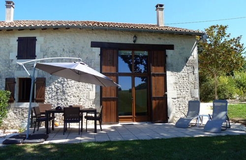 Beautifully restored light, spacious & well equipped with quality amenities throughout, this peaceful, secluded house is ideal for families and couples wishing to share all that the Dordogne and Aquitaine & Charente have to offer. Large 14 metre child safe gated pool within 25 metres of the house Coutancie enjoys a south facing sunny aspect nestling in a Perigourdine valley, & the house benefits from beautiful surrounding countryside and easy access to shops, supermarkets, market towns and many authentic French cafes & restaurants. The large patio with BBQ and outside dining table, plus the well equipped kitchen will also help for those days you prefer to just laze by the pool, read and take in the beautiful surroundings. Sleeps 6 plus 2 (2 children on sofa bed/Zbed or cot for under 2s). Please note the pool is not available from October to mid-May . Although unheated, the pool is swimmable from early May through to late October.