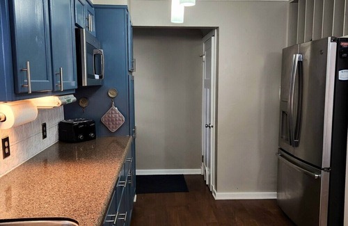 Fully stocked kitchen with stainless steel appliances, dining area, living room, family room, laundry room (with laundry chute), redone backyard with privacy fence, hair dryer, and vacuum cleaner are also available.