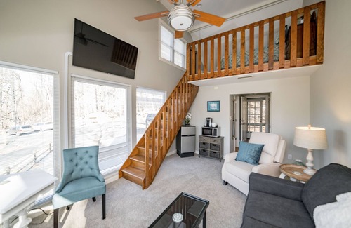 UPSTAIRS SUITES: Top floor has 3 master suites, each with a main level living room with full bath, queen sofa bed, large screen TV, DVD player, seating area, mini-frig, microwave, Keurig coffee maker, iron, hair dryer, etc. and a separate loft bedroom.