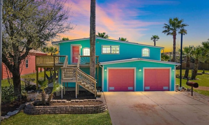 Redneck Riviera in San Leon offers the perfect blend of relaxation and fun. Spread across 3 buildings with 8 bedrooms, it provides privacy for all. Dive into the large sparklingly above-ground pool, challenge friends in the game rooms (arcade games, foosball, and more!), or roast marshmallows by the fire pit under starry skies. Feeling peckish? Cook under the covered BBQ area. There is space for your entire crew and something for everyone.