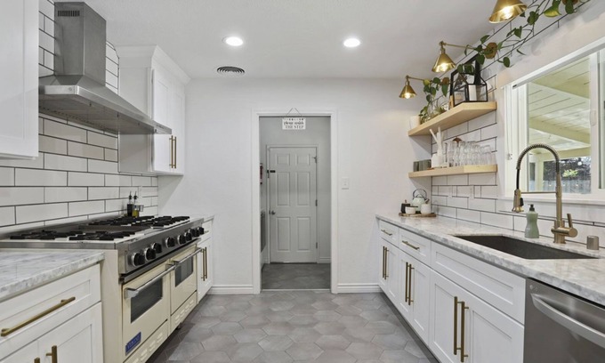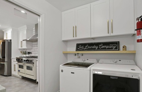 • Fully equipped + stocked kitchen w/ coffee & tea
