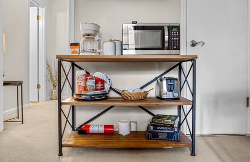 One bedroom features designated workspace perfect for office seeking travelers. Iron & ironing board are also provided.
