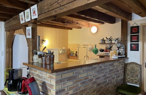 This detached cottage, converted from a barn, is located in a hilly setting surrounded by woods and trails in the Bourbonnais countryside. It offers a perfect place to spend time with family or friends. This unique little village features a Buddhist pagoda, a mining museum, a tourist mining train, and a rail bike. You can explore the hiking trails.