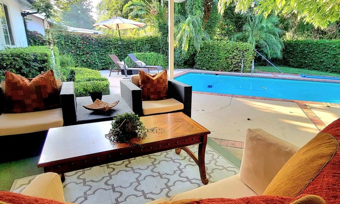 **A quiet tenant and her cat reside in the garage apartment studio, but the entire house, pool, and yard are 100% private and exclusively yours to enjoy. No shared spaces, except the driveway. You will have one designated spot in the driveway and the tenant has one spot.**