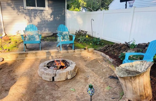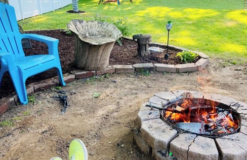 Movie theater/game room with lots of movies. Indoor swing in the hallway, bean bag lounge, HUGE fenced in backyard with yard games, trampoline and fire pit.