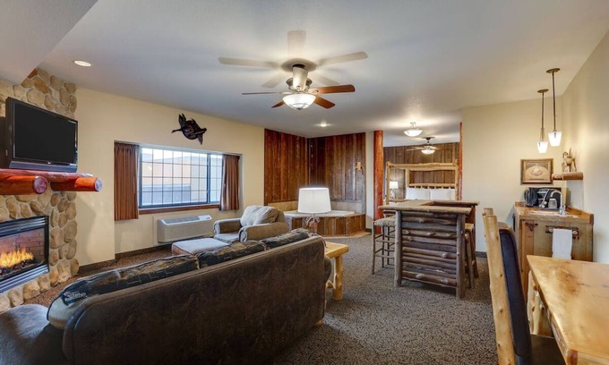 Welcome to our lodge-style hotel, blending rustic charm with modern comfort across 161 unique rooms. Enjoy amenities like our heated indoor/outdoor pool, fitness center, and complimentary hot breakfast. Relax at Palmer’s Pub for a local brew. Your memorable stay in the heart of the action awaits.
