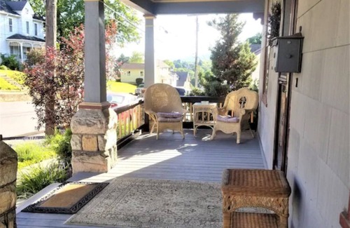 Virgnia's house has a spacious front porch with wicker seating, as well as a smaller back porch with table for outdoor dining. Pets welcome for a small fee.