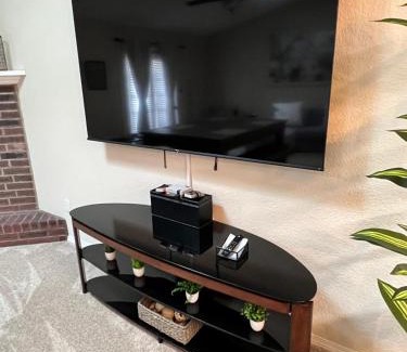 A recently renovated vacation home, Family Fun! Sleeps 8, King Bed, 2 Queens, and Sofa Bed, Games - in Rogers offers accommodations in Rogers. This property offers access to a pool table, free private parking, and free Wifi. The accommodation offers private check-in and check-out and bicycle parking for guests. The air-conditioned vacation home consists of 2 bedrooms, a living room, a fully equipped kitchen with a dishwasher and a kettle, and 2 bathrooms with a bath and a hair dryer. A flat-screen TV with streaming services and a game console are featured. There's also a seating area and a fireplace. You can play table tennis at the vacation home, and the area is popular for cycling. An indoor play area is also available for guests at Family Fun! Sleeps 8, King Bed, 2 Queens, and Sofa Bed, Games - in Rogers. Arkansas Missouri Railroad is 9.3 miles from the accommodation, while Hamilton Shopping Center is 9.5 miles away. Northwest Arkansas Regional Airport is 12 miles from the property.