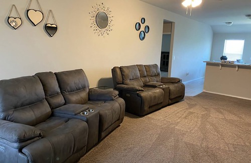 Newly built home in a small quiet neighborhood. The Newcastle area is a growing city with many places to eat. Only minutes away from Moore, Downtown OKC and Norman. Home is right off Main street that leads straight into either 44 west or 44 east.