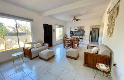 Casa Lizaola is a newly remodeled 2 bedroom 2 bathroom property with an ample backyard, lounging areas, and fruit trees. Enjoy a family meal in a fully equipped kitchen or catch up on your favorite show in the living room TV.