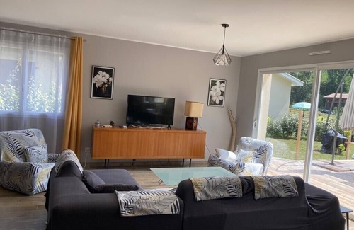 Family home near bassin d'arcachon is located in Le Barp. Family home near bassin d'arcachon provides accommodation, featuring Child Friendly, Laundry, Parking, among other amenities. This House features Child Friendly, Laundry, Parking, to make your stay a comfortable one.