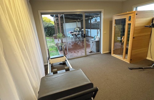 Unwind in this spacious 4-bedroom, pet-friendly retreat perfect for families or groups. Enjoy wellness amenities including a Pilates reformer, and sauna. Sleeps 8 comfortably with a double garage, full kitchen, and open-plan living. Relax in comfort, recharge in the sauna, or bring your furry friend along for the adventure. Ideal for short breaks or extended stays. Your peaceful escape awaits!