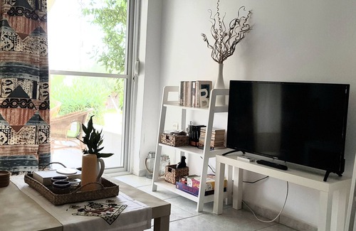 Family house 100m from the beach, for ideal vacation. In Gerakini, Halkidiki. 2-floor house in a complex, 80sq.m, 2 bedrooms, 5 beds+infant, living room, 1 bathroom + 1 WC. Cozy, spacefull & quiet, with all comforts. Lots of green, sandy private beach, protected. Kid's playground and basketball field for inhabitants. 15 min from big cities