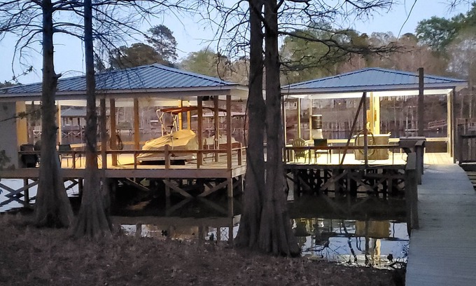 If you are looking for a place you can go with your family and friends to enjoy some fishing and relaxation, you have found it. Wonderful location in a quiet neighborhood, great for fishing on Toledo Bend Lake. Launch your boat at our private boat ramp then take off on the lake. Or dock your boat on our pier or floating deck and fish in the quiet cove that just teems with fish. The kids will have a blast on the dock catching Perch. Cove has easy access to the main lake. Our huge dock has electricity (bring an extension cord to charge a trolling motor) and running water. There is a fish cleaning table with running water so you can clean all those fish you catch. When you're through fishing, kick back in a chair on the dock or porch with your friends or family. There is a deck near the house for grilling equipped with a charcoal grill. Just bring your own charcoal and lighter. If you need a larger grill, you're welcome to use the large wood-burning grill in the yard that we share with family members next door.