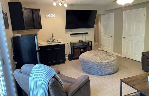 Stay comfortably in Lexington at this 5-bedroom house. This welcoming property boasts 2 king beds, two twin beds, and 3 queen beds, ensuring a perfect fit for all guests. With amenities like an iron, WiFi, heating and AC, a washer and dryer, and multiple TVs, your stay will be as convenient as it is quaint. The 3 and a half bathrooms provide ample space for everyone to freshen up. Experience what Lexington has to offer with a stay at our house, a short drive from excellent restaurants and shopping regardless of budget.