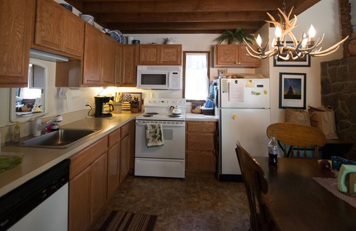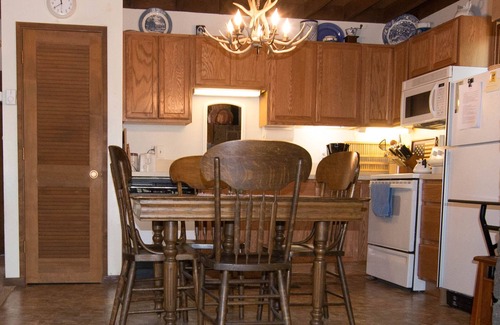- Spacious Accommodations: The cabin features an open floor plan with vaulted ceilings, making it ideal for gatherings and celebrations with family and friends. With ample seating and a dining table that expands to host up to eight guests, you can easily entertain loved ones.