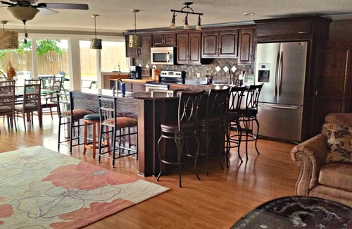 Having two kitchens, plenty of seating, and an open gathering area, our home is not only great for family outings, fishermen getaways, and vacations but also perfect for wedding receptions, family reunions, baby showers, business meetings, small wedding ceremonies, youth group outings, bridal showers, etc. We will also consider monthly corporate/business stays. Nightly rates/cleaning fees may be increased with larger groups.