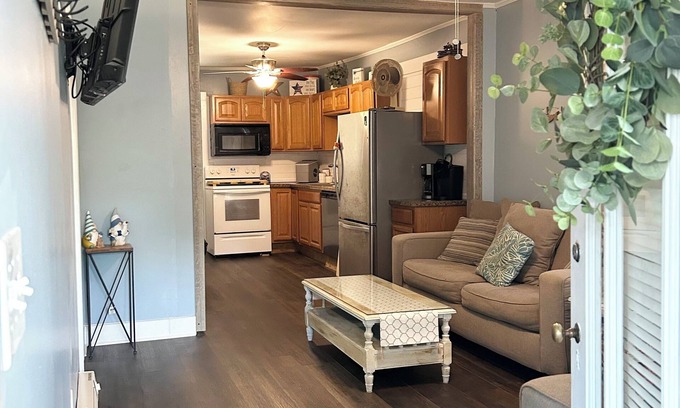Discover this superbly renovated 3-bedroom rustic gem in Conneaut Lake. This modern-ish cottage offers a cozy atmosphere to sleep up to 10 guests with a full bed, queen bed, and 2 bunk beds (twin and full) to accommodate all guests. You can even bring your well-behaved dog (addt’l fee will apply). With fully equipped kitchen, AC, heating, WiFi, smart tvs, a bluetooth speaker in the bathroom and available linens (linens/towels can be provided with advanced notice for a fee) your stay will be comfortable and convenient. Enjoy your time in Conneaut Lake playing indoor board games on the breezy enclosed front porch, outdoor yard games, or relax by the firepit. Don’t want to cook in the kitchen? (Me neither) there’s a grill for that!