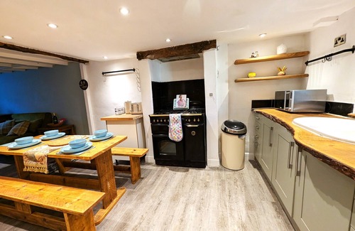 Lower ground - The cottage kitchen is fully equipped with a dining table, dishwasher, Lavazza coffee machine, kettle, toaster, (Rangemaster) and microwave. The cottage benefits with a second living area with two 2-seater sofas with one sofa that can be converted to a small double bed. Behind the kitchen/living area is a utility room which houses a full-size dishwasher, a 8kg washing machine and a separate toilet. The private garden is accessed through the utilities room onto the terrace and patio with views of Bliss Mill.