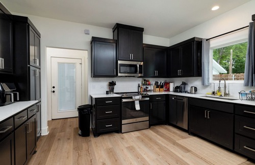 Step into a bright, open-concept living area designed for relaxation and connection—perfect for families or groups. The fully equipped kitchen features modern appliances, cookware, and everything you need to whip up meals at home. Whether you're working remotely or streaming your favorite shows, enjoy fast, reliable high-speed Wi-Fi throughout the home.