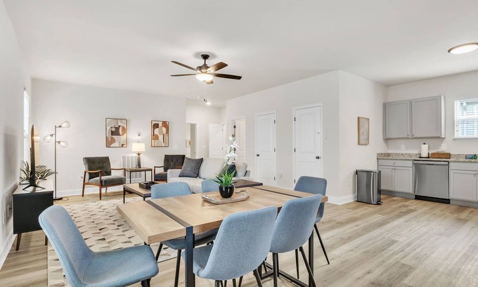 Welcome to Beverly South, our thoughtfully designed 2BR/2BA single-level home located just 1 mile from Downtown Greer and 30 minutes from Downtown Greenville. Enjoy our shared community fire pit and relax in our comfortable space that sleeps 4 with 1 king bed and 2 twin beds. Perfect for families or couples, this cozy retreat offers the best of both worlds with convenient access to nearby attractions and peaceful surroundings. Book your stay now and experience the charm of the Upstate!
