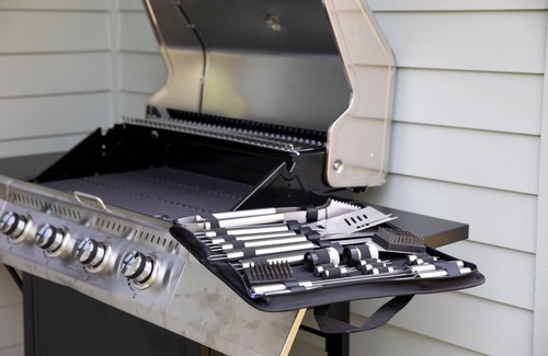 -Gourmet gas grill, utensils, and 1 propane tank (optional